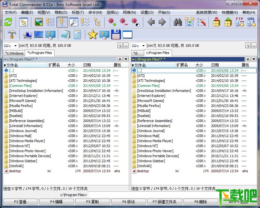 Total Commander除了支持详细资料、列表、缩略图等资源管理器也有的显示方式外,利用内容插件,支持各式各样的自定义列视图,显示不同文件的内部信息,满足您查看不同文件的需求。tc多标签界面,让本来的两个窗口,可以扩展到几十个,操作空间更显自由。而贴心的历史和常用文件夹按钮,可以导出/导入的标签/文件列表,让您穿越各个空间更加快捷高效。