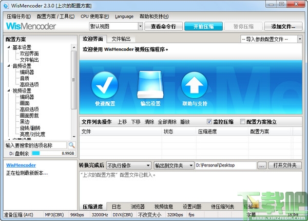 WisMencoder是一款avi格式转换器,能够把您的电脑上的所有视频格式,包括avi,mpg,rmvb,wmv,mp4,mov,dat等格式以最快的速度和高到的质量转换为AVI格式,WisMencoder转换速度和质量都高于同类软件。AVI是现在的最为流行的视频格式,采用divx、xvid和x264格式编码的视频文件能拥有较高的视频质量且有非常少的磁盘空间占用。效果上并不亚于wmv或者rmvb,而压缩/转换速度更比wmv和rmvb远远快很多。