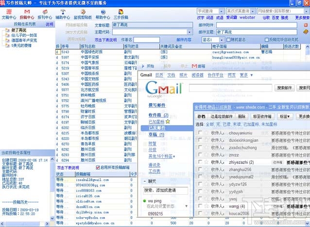 一、强大的文章管理功能1。写作投稿大师采用自已设计的数据库,与常见的商用数据库不一样的是,可以随意进行字节级控制,保证了程序的柔韧性与可扩展性。2。可以无限层次地对自己的文章进行分类管理。3。支持纯文本、富文本及网页格式的编辑。4。可以导入导出文章数据。5。支持全文检索文章数据。6。支持数据库压缩及备份。二、强大的文章编辑功能1。剪切、复制、粘贴及查找替换等常规操作。2。删除空格、空行、重复行及回车符。3。删除网页控制符,让复杂的网页内容瞬间变成纯文本。4。简繁体互相转换。包括GB与BIG5码之间的互相转换以及GBK字符集之间的繁简转换。5。段前空两格。6。大小写、全半角之间的转换。7。将繁体、英文标点一次性地转换为标准的简体中文标点。三、强大的数据库管理及扩充功能1。写作投稿大师采用自己设计的数据库,可操作性及可扩展性极佳。2。写作投稿大师的报刊数据库采用开放式的设计,就是说,用户可以随心所欲地删减、编辑以及添加报刊数据。3。可以多角度、全方位地对数据库进行检索筛选操作,让用户可以迅速找到自己需要的数据。4。除了程序提供的数据分类,用户可以自定义数据分类,可以极大地提高工作效率。5。支持无限数量的投稿历史记录。只要按一下按钮,每篇文章的投稿历史便可一览无余。6。支持文章的稿费记录,用户可以知道自己的稿费收入情况。7。支持报刊数据在线升级,升级报刊数据后不需要重新启动程序。8。允许用户建立自己的报刊数据,并且允许导出自己的数据。9。可以筛选并查看有征稿信息的报刊数据。10。可以按自己指定的日期筛选并查看该日期之后更新过的报刊数据。11。支持数据库压缩及备份。四、强大而稳定的投稿功能1。可以一次连续稳定地发送数百封邮件。完美支持无痕一稿多投。2。支持单个收费邮箱投稿模式。速度、稳定性及发信数量只受服务商的限制。3。支持收费邮箱与免费邮箱混合投稿模式。此模式下可以完全不使用收费邮箱。写作投稿大师对免费邮箱的支持很好,用户不必申请收费邮箱就能很好地完成投稿任务。4。提供邮箱保护机制。免费邮箱多有一分钟内只能发一两封邮件的限制,稍有差池,便冻结邮箱若干小时若干天,严重的会被永久冻结。写作投稿大师提供了保护机制,比较大限度地让用户免受更换邮箱之苦。5。针对某篇文章,可以一键去掉已投报刊,让您免受编辑指责一稿多投的尴尬。6。支持以纯文本及网页两种邮件格式。文本格式支持附件。五、规
