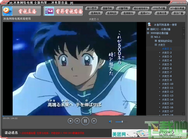 冰鱼网络电视全面支持电信、网通、铁通、教育网等各种网络用户!只要你可以上网,打开冰鱼网络电视。365天24小时,精彩无比的海量节目都为你免费精彩直播,免费随意点播!
