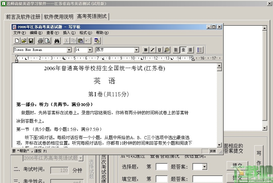 江苏省高考英语测试软件包括2006年江苏省高考英语试题——2011年江苏省高考英语试题等六年全真试题(含听力录音),另有12套模拟试题(含听力录音)。全部试题配有详细的答案解析。(题目每年都会相应地增加和更新)