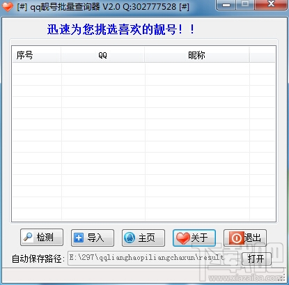 现在的qq号有十位那么多,申请得到的号又是很难记的。想注册一个好记又好看的号还真不容易啊。无数的号码qq号码不知哪个注册了没,一个个查询不太现实,qq靓号查询器帮你解决这个问题,迅速检测已注册和未注册的qq号码,为您提供超级靓号,支持批量导入功能(建一个文本文件,一行一个Q号,或者用excel弄一批号复制到文本文件里,再导入就好了)支持多线程查询,速度飞快,查询结果自动保存,软件简单但是非常实用(有些人不惜花高价就为了淘个靓号呀)。