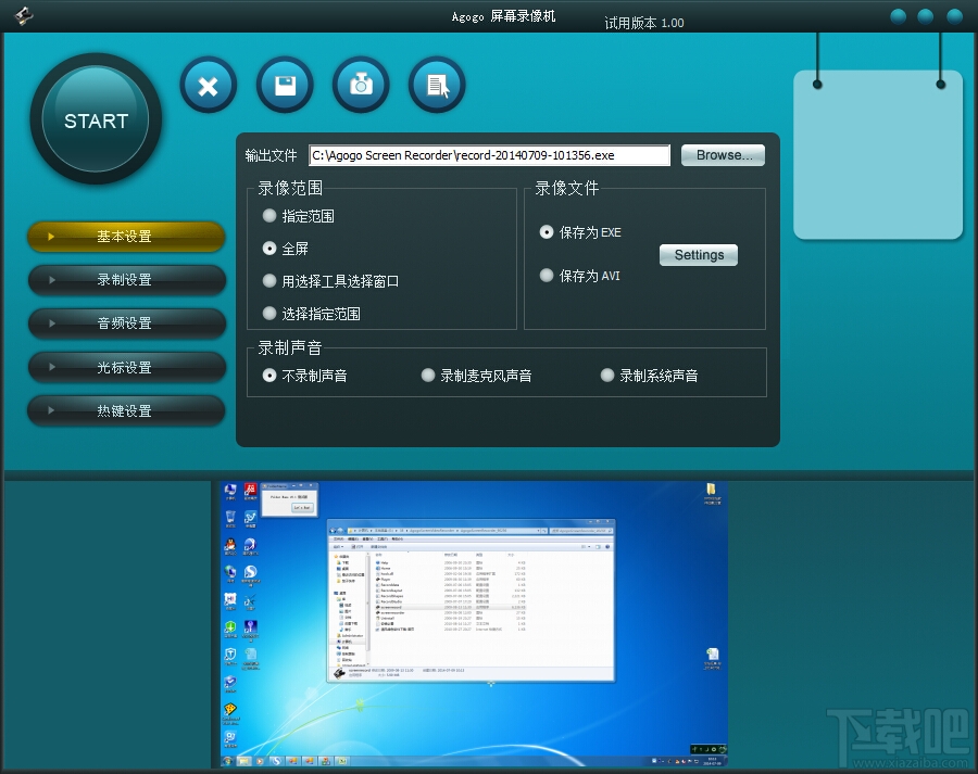 Agogo Video Screen Recorder是一款简单易用的屏幕视频记录软件,它可以记录屏幕上发生的一切活动并以标准的avi视频格式和exe方式输出,用户可以自定义捕捉范围,包括全屏幕,窗口,固定区域等,用户还可以利用麦克风或外接音源在视频捕捉中加入音频。