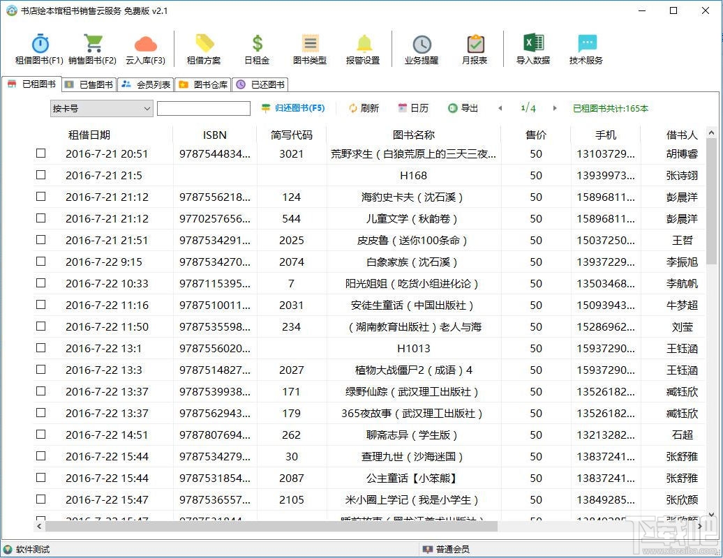 还在为入库图书烦恼吗?只要您使用扫描枪一扫即入库!书店绘本馆租书销售云服务是一款能够管理书店出租的软件。软件有强大的云服务器确保每名会员借书数量以及金额准确无比,并且有多种租借方案,满足您书店绘本馆对会员多种需求。每当书店出租一本书库存自动会减1,归还后会加1,销售亦是如此,软件还具有库存报警机制,从此您无需担心店内图书库存还有多少。