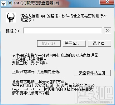 antiQQ无密码消息查看器永久版本通过特殊技术,使你不需要输入QQ密码,就可以查看本地机上曾经登陆过的所有QQ号的聊天记录,也就是说,只要通过该软件启动QQ,那么不输入密码,你也能看到别人的或者你自己的在消息管理器中的聊天记录。