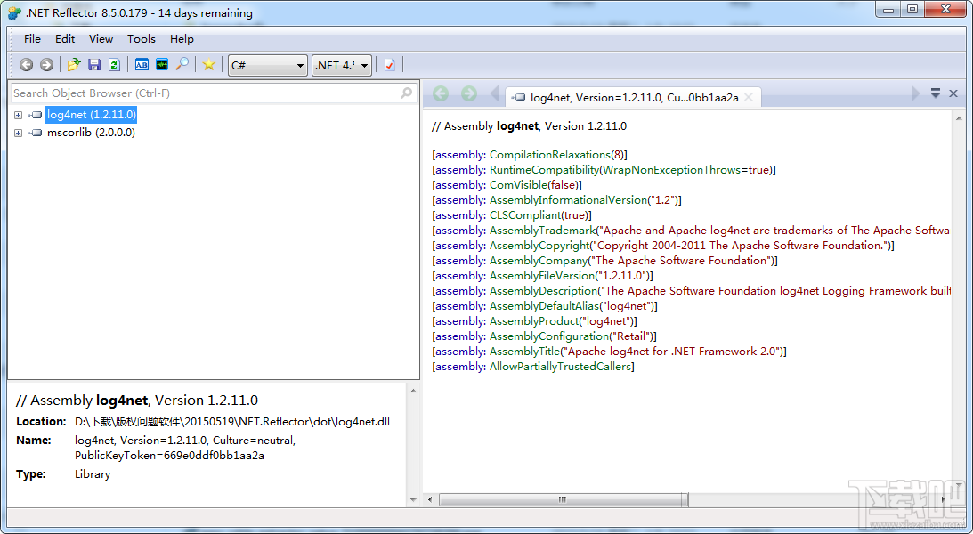 .NET Reflector是一个类浏览器和反编译器,.NET Reflector可以分析程序集并向你展示它的所有秘密。.NET 框架向全世界引入了可用来分析任何基于 .NET 的代码(无论它是单个类还是完整的程序集)的反射概念。反射还可以用来检索有关特定程序集中包含的各种类、方法和属性的信息。使用 .NET Reflector,你可以浏览程序集的类和方法,可以分析由这些类和方法生成的 Microsoft 中间语言 (MSIL),并且可以反编译这些类和方法并查看 C# 或 Visual Basic .NET 中的等价类和方法。