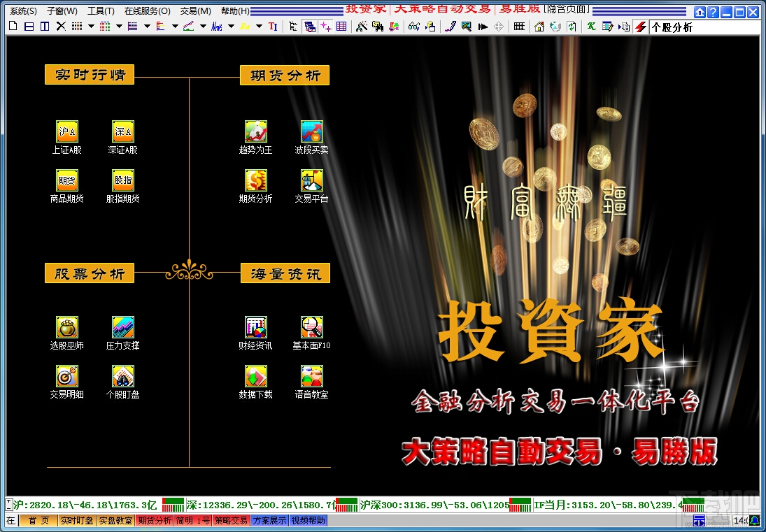 易胜版是建立在投资家《精细统计理论》上的金融分析系统,支持股票、期货、期指、权证、外汇等各种金融工具的专业分析工具。如果您对该软件有任何下载的问题、软件安装上的质疑,都可以在软件下载下方的留言处写出您对我们的建议。