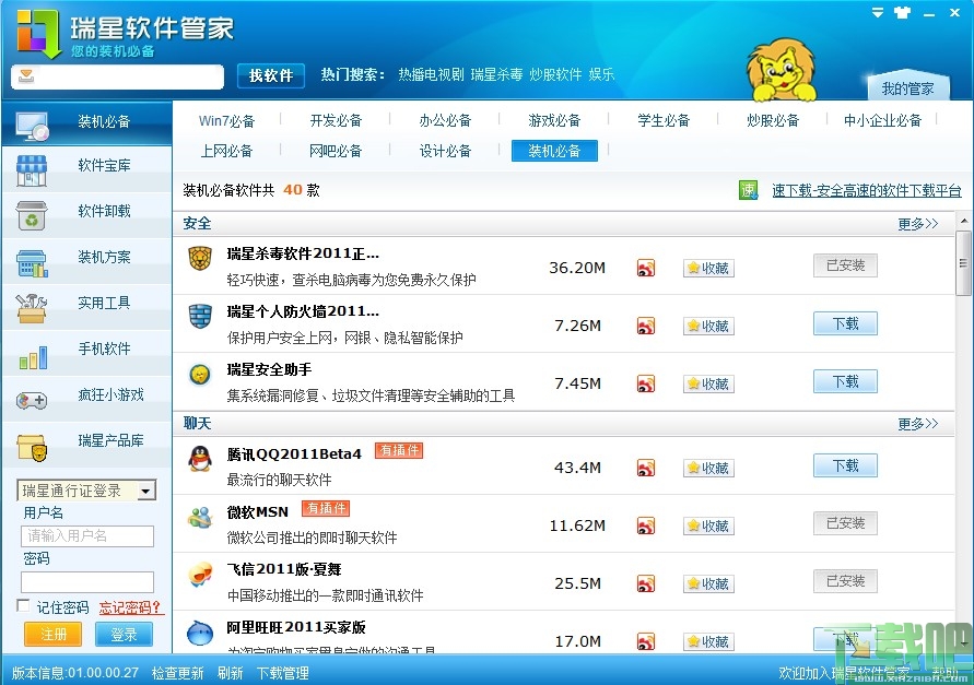瑞星软件管家是一款小巧免费的下载安装软件的平台。各种软件以分类方式呈现,为您精心挑选功能强大、稳定性强、更新及时的优秀软件。每款软件都有详细介绍、新增版本功能和软件界面。