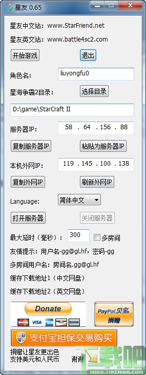所有人打开位于星友目录中StarFriend_0.55.exe填写各自的星际2台服客户端地址(仅第一次),以及服务器的ip地址