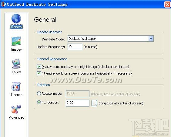 联合人造卫星上得到的图片来创建一张世界地图显示地球上的白天和黑夜-你能看到日出,日落和一年中的四季。Desktate可以自动的更新你的壁纸或者作为一个屏幕保护运行。