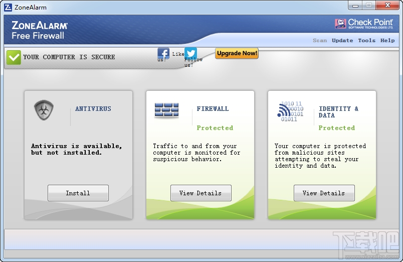 zonealarm防火墙(ZoneAlarm Free Firewall)是一款免费的防火墙。zonealarm防火墙对资源的要求不高,非常适合家庭个人用户的使用。能够监视来自网络内外的通讯情况,同时兼具危险附件隔离、cookies保护和弹出式广告条拦截等六大特色功能。安装后运行,在系统概要中你可以自行设置程序界面的颜色、修改密码以及自动更新等内容。