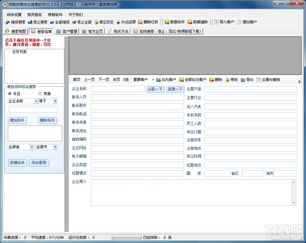 1、采集精度高,能根据关键字在各大商贸网站上搜索高精度企业邮箱地址、个人邮箱地址,针对性极强。