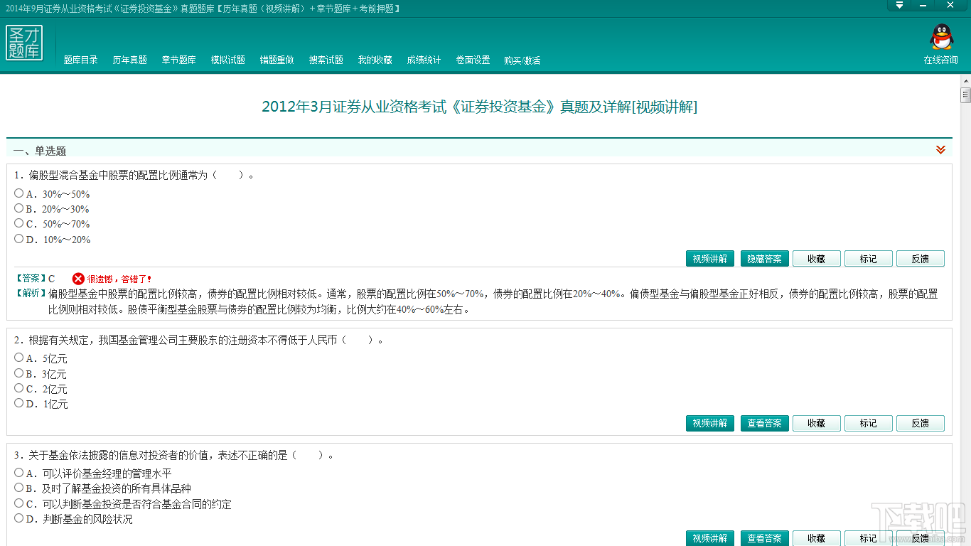 圣才2014年9月证券从业资格考试《证券投资基金》真题题库,一款提供2014年9月证券从业资格考试《证券投资基金》真题题库的软件。