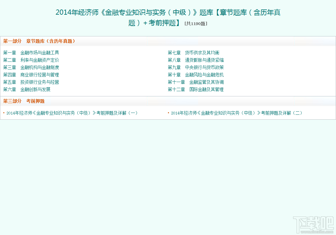 本题库是详解全国经济专业技术资格考试“金融专业知识与实务(中级)”科目的题库,包括章节题库(含历年真题)和考前押题两大部分。