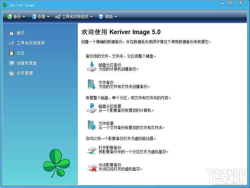 Keriver Image 5.0是一款强大而易用的磁盘克隆还原工具。本软件经过将近5年的开发,具有完全自主知识产权,Keriver Image可以保护数据免受计算机灾难的破坏,克隆功能可以帮助您创建完整磁盘、一个或多个分区的备份影像文件。该影像文件可以还原到一个或多个分区或磁盘上。