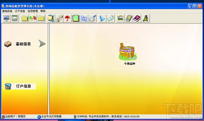 《兴华奶制品配送管理系统》它集输入、维护、查询、筛选、统计和各种处理为一体,是一款专门协助各订奶点进行牛奶配送管理的系统,根植于牛奶配送管理的实际情况,实用而科学。 主要功能包括基础信息(牛奶品种、区段信息、送奶工信息)、订户资料(订户资料、到期用户、在送用户、未结帐用户)、送奶管理(送奶工取奶登记、用户收奶登记、期间送奶汇总、用户期间收取查询、送奶工当天取奶)等。