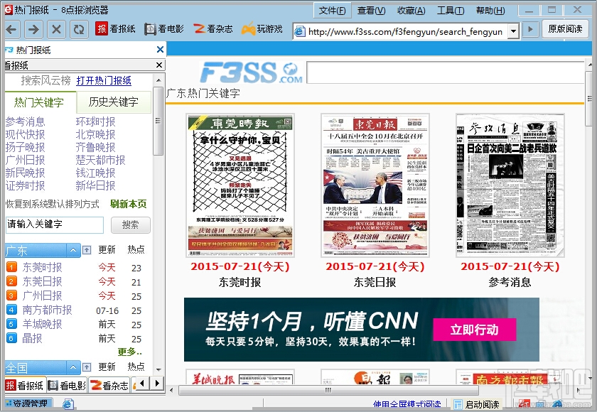 5、8点报阅读器唯一地位(比较大最全最专业):从当天报纸发布的及时性(每天8点)、当天报纸发布数量、当天报纸发布覆盖地区(全国32个省)、当天报纸版面质量、看报软件的阅读习惯等性能上比较,目前还没有找到可以比较的竞争对手,在电子报纸行业是绝对的第一位置。