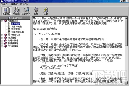 Visual Basic学习系统是一个教学软件,主要有以下功能