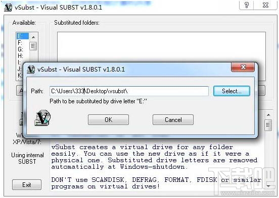vSubst是32Bit的SUBST,可以把任何文件夹虚拟成硬盘驱动器,当然也很容易的清除所有虚拟盘。