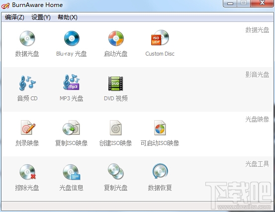 BurnAware Home Edition是一款强力的刻录工具,它支持CD, DVD, 蓝光光盘和HD-DVD的媒体,支持所有标准的光存储介质包括 CD-R/RW, DVD-R/RW, DVD+R/RW, BD-R/RE, HD-DVD-R/RW and DVD-RAM等,也支持相当多的刻录设备。