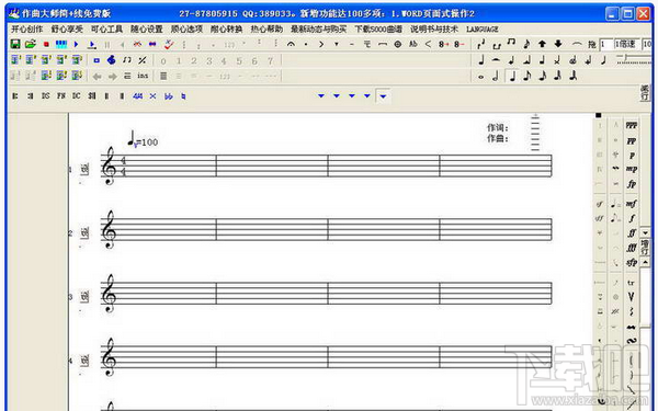 新增彩色乐谱功能,新增大字体支持和快速修改功能,新增分谱保存功能,加强了鼠标右键操作,可以直接在小节线上右键进入设置,新增模板功能,可调入标准模板和自定义的模板,新增全页输入文本功能,可在任意地方输入文本,支持简谱的首调和固定调,支持简谱弧线用鼠标右键调节上下,新增副旋律功能。支持一个音符上写多个简谱弧线,修复多个BUG,操作更人性化。美化了字库。绿色软件,只需一次安装,长期可用。 主要功能: 风雅软件有限公司作曲大师系列软件具备作曲软件,打谱软件,音乐创作软件,音乐教学软件,音乐排版出书软件,MIDI编辑软件,自动配器软件和电子琴软件八大功能,拥有万首例子曲库。 1,演奏功能取得突破性进展,演奏的流畅度有了极大的提高,彻底克服了老产品换页时停顿的问题,演奏的同步问题得到了妥善的解决。 2,采用了全新的页面式的界面,可直接在WORD式的纸张页面上进行完全的所见即所得的编辑,行距和音符可以直接用鼠标进行拖动,大大提高了排版效率。 3,提供了老的输入界面和全新的综合输入法的界面的选项,使作曲大师的输入法可以实现鼠标滑动输入,键盘和小键盘按键输入,MIDI单步输入以及使用编辑键进行方便的编辑! 4,大大加强了巨型文件的处理能力和处理速度,使大幅面,数十个声部,千行乐谱的输入,夹杂复杂的循环和跳转的乐曲的演奏,打印均可完美和高速运行。 5,提供完美的分解为小文件的功能,减轻翻页的痛苦。 6,大大提高了简线互换的准确性和稳定性,特别是在连线的转换上有了质的提高。 7,提高了读取MIDI文件的准确性,并将在后续升级版本中免费提供加强的读取MIDI文件的能。 8,加强了作曲大师的智能处理能力,对于文件中有的错误,作曲大师可以自动进行修正,并保留了用户是否修复的权力。 9,增加简谱平滑弧线选项。 10,完善了缩放功能,加强了特殊版式和页面尺寸如32K的支持。 11,完善了三连音播放效果。 12,增加了20多个新符号且预留了100个自定义符号空间。 13,完善了MIDI键盘输入功能。