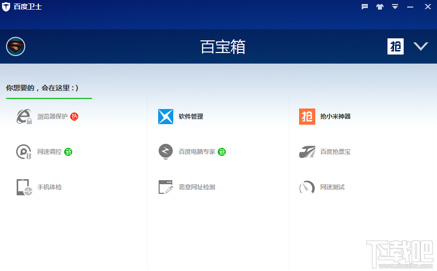 百度卫士是百度公司全新出品的简单可信赖的系统工具软件,集合了电脑加速、系统清理、木马查杀和软件管理功能,竭力为用户提供轻巧、快速、智能、纯净的产品体验。百度卫士郑重承诺: 永久免费、不骚扰用户、不胁迫用户、不偷窥用户隐私。最快抢小米软件工具,比手动成功率高200%,想要轻松得到新的小米手机,就使用百度卫士。