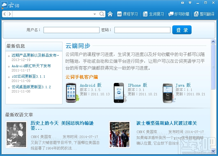22.4 MB/2020-08-17云词是一个英语学习平台,支持包括Web网站、电脑桌面,平板,手机以及电视等多种终端设备。云词在算法设计上采用了人类记忆规律的研究成果,为用户提供查词、背词、阅读...
