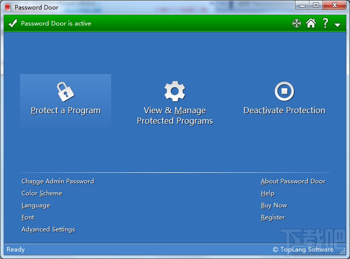 为你电脑上安装的任何一个或者每个流行的软件增加密码保护的功能。像Winzip、Acdsee、Office、IE浏览器等软件本身没有密码保护特性,什么人都可以使用,使用这个软件就可以为这些软件增加密码保护的特性。任何人必须首先输入正确的密码才能使用这些软件。Password Door的使用非常简单,不需要了解专门的工作原理,可以轻松的实现对任一个软件的保护。这个软件不修改原始的软件本身,所以不会破坏已有的软件和数据,并且极具通用性,及时是在本软件之后发行的软件,一样可以被密码保护。
