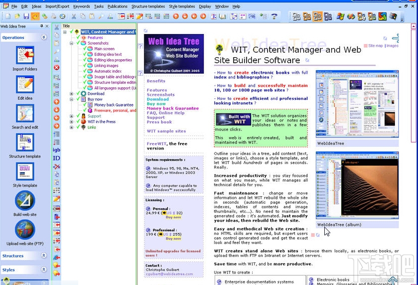 WebIdeaTree是一个知讯管理器、网站建立器和网页编辑器融合在一起的程式。你不需要写入任何的HTML编码,因为每样物件都以自动化的方式提供。只要你想的到,此程式都已包含,就像所见即所得一样。你的网站可以利用浏览工具列、indexes和table等物件。你也可以利用HTML编码的方式编辑。