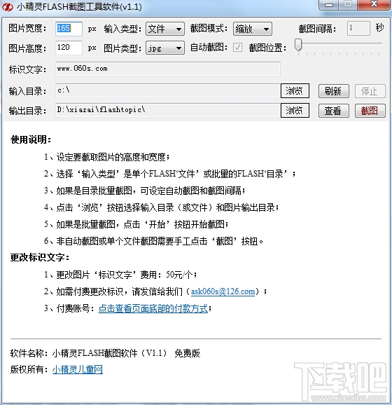 小精灵FLASH截图工具软件是把FLASH截图成缩略图的工具软件,其主要特点是可批量为FLASH截图!