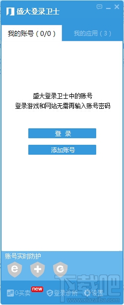 盛大登录卫士是盛大官方出品的目前互联网唯一的网游账号安全软件,通过高级账号安全技术服务,包括但不限于密码输入保护、虚拟键盘、盗号风险钓鱼网站警示、账号异常即时提醒改密踢人等功能,保护您的账号神圣不可侵犯,同时提供账号群登录、二维码闪电登录、手机一键登录等新潮炫酷的登录体验。