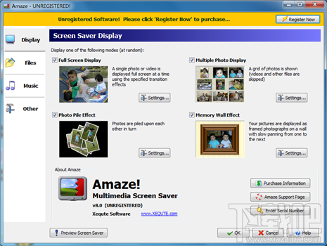 Amaze是一款方便的图像屏保制作软件,有七种图像转换方式。Amaze可以让你用自己喜欢的相片做成个性化美丽的桌面屏保。