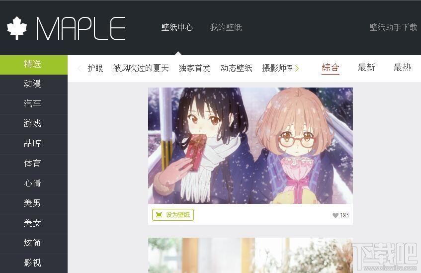 枫木壁纸是一款聚合全网高清壁纸的pc客户端软件,其特点在于整合全网的高清图片,通过高效的个性化推荐算法,将优质的壁纸精准的推荐给用户。枫木壁纸包含风景,美女,动漫,汽车,体育,游戏等各式分类,各类图片,应用尽有。枫木壁纸拥有智能裁剪功能,可自动适配用户电脑分辨率进行裁剪,一键操作,即可将高清图片设为壁纸。