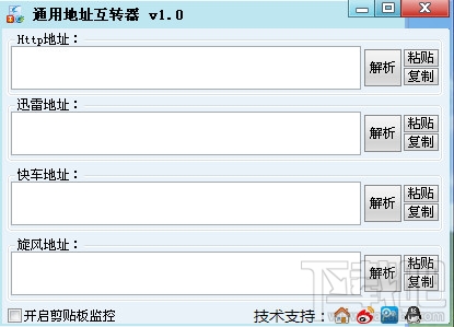 全面支持:Http、Ftp、ed2k、迅雷、快车、QQ旋风专用下载地址的解析和加密,并且支持系统剪切板自动监控