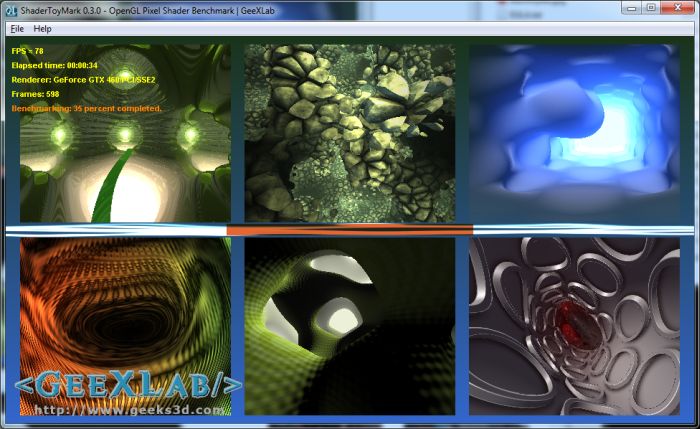 ShaderToyMark是一个基于大幅像素着色器OpenGL基准测试,需要大量GPU的强大处理。ShaderToyMark基准测试一个图形卡: 启动 ShaderToyMark,选择分辨率、图形卡和读取分数。