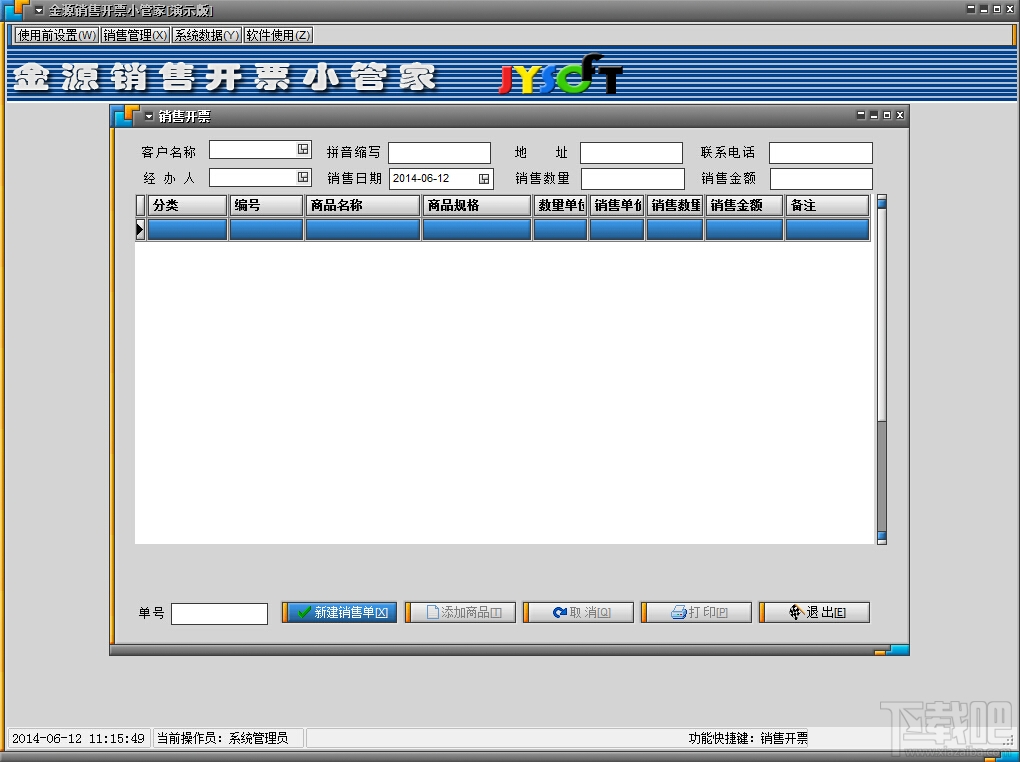 金源销售开票小管家以私营业主、批发零售商等为应用群体,主要实现销售开票、销售查询等功能,尽可量的简化了操作的步骤,使软件更具可操作性,界面友好等特点,无基础者也可在较短时间内全面掌握。