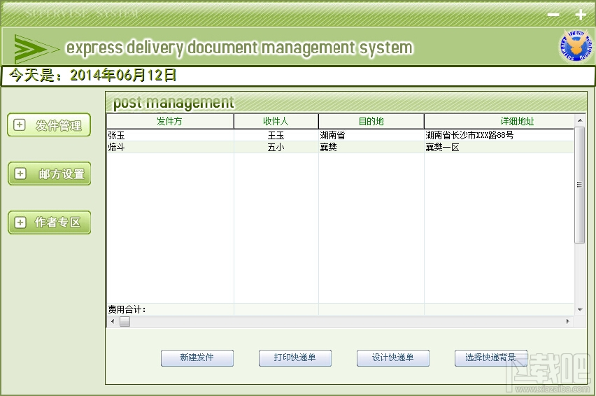 快递管理系统是一款专业打印快递单据及单据管理的软件,其数据处理灵活,简洁易用,功能完备,界面美观的特点极适合快递业务较多的公司适用,而且本程序可无偿使用,用户不需出任何费用,只要你自备打印单据及耗材,就可迅速打出单据并及时寄出,再也不用到邮递公司去耗时……