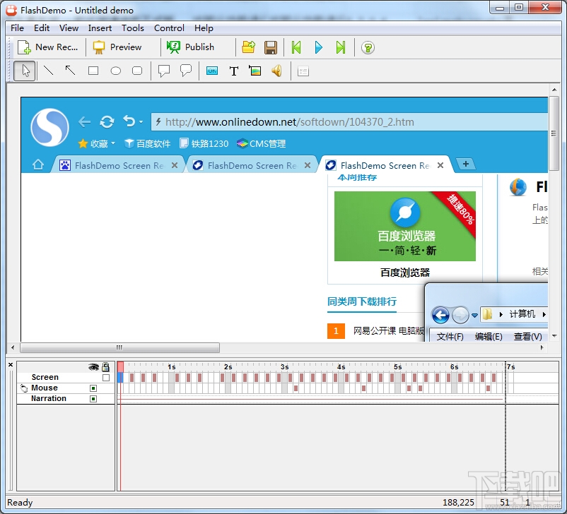 FlashDemo Screen Recorder是一款很好用的屏幕捕捉工具,它可以帮助你记录下你的屏幕上的内容,并以SWF格式输出,总之,他可以帮助你创建演示,讲解或帮助文件。