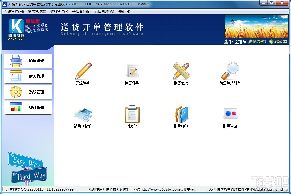 开博送货单打印软件(专业版)集成销售订单管理功能的送货单打印软件:功能全面、架构灵活、操作简单,是一套专为小型企业或个体户及个人用于送货单管理的软件,本软件依据我司在各种行业内积累的丰富的信息化经验而研发,结合各行各业的特点而量身订做的管理系统。开博送货单打印软件源自于我司大型ERP系统框架并依据小型企业的实际情况而研发,功能强大、操作简便、且具有超强的个性化能力,可满足不同客户的特殊要求,开博送货单打印软件(专业版)不仅仅集成了送货单管理、产品管理、客户管理、数据分析、图表分析等常见的送货单打印管理功能,还具有应收账款管理、银行收支管理、文档资料管理等等功能,在管理好送货单的同时,您还可以管理好您的客户欠款情况,软件特点:开博送货单打印软件具有数据自动记忆功能:您开过的送货单不再需要重复录入;您开过单的的客户信息自动保留到客户资料库中,您给任何一个客户的产品售价自动记录并在当次开单时自动提示……等等;能够做到了您所想不到的细致功能。送货单号由系统自动生成(可按年+月+日+流水号等多种格式生成送货单号),真正的方便实用;系统内置强大的权限管理功能,真真正正的让您从此告别手工抄写送货单和使用EXCEL做月结的烦恼;打印出整齐漂亮的送货单,同时还能即时管理客户欠款;开博送货单打印软件内置强大的打印功能,可以打印任何格式的送货单,可以根据用户要求修改打印格式;充分利用强大的数据库功能给工作带来的便利,简单管理从现在开始。