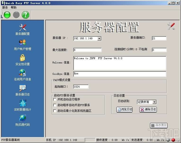 Quick FTP Server是一个容易操作与使用的 FTP Server 服务器软件,接口清晰简单,你可以用该软件来设定你的 FTP Server 限定某些资料夹是否要让特定的 IP 可读取 allow 或不可读取 Deny。