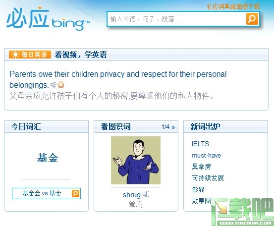 2.桌面版必应词典结合了互联网在线词典及桌面词典的优势,依托必应搜索引擎技术,及时发现并收录网络新兴词汇,让您的词典永不过时。