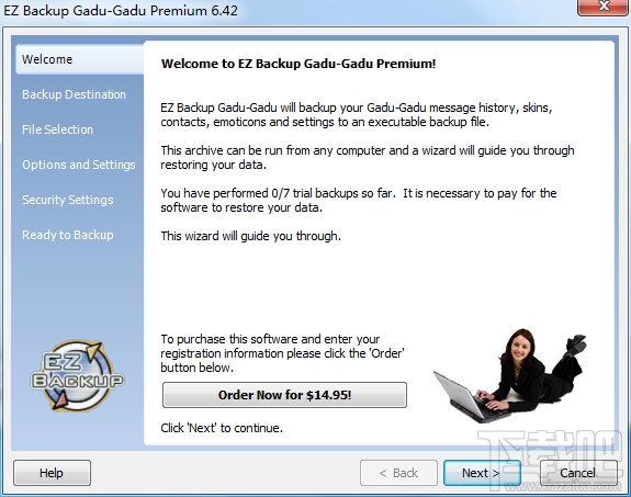 EZ Backup Gadu-Gadu Premium可以很容易地备份你的Gadu-Gadu历史信息、皮肤、联系人、表情符号并设置到一个本地驱动器、网络文件夹,CD/DVD甚至远程FTP服务器!调度功能可以提供一个完全自动化的备份解决方案和可得到128位加密的安全备份档案。