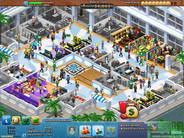 巨大的商机在等着你!在超级购物城《Mall-a-Palooza》中,你需要将一座空旷的大型商城,建设成一座繁华的购物天堂。不仅要建立自己独特的经营项目,增设各类商店吸引顾客前来购物,还要迎接其他商店的竞争,保持购物中心的清洁。成功来之不易,当你克服了所有困难,你会得到回报的机会去建造更大更好的超级购物城。