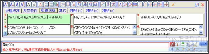使用该软件可以快速输入化学方程式、分子式、常用公式,对于数字会自动设置上下标和大小写;快速插入flash动画;快速拼装化学实验仪器、装置,有机基团、结构式;快速输入各种学科符号、图形、化学反应条件、电子层、化合价、同位素等;函数图像的定制;快速设置和调整常用格式、快速操作图形,清除超链接,各种功能的快捷按钮等。