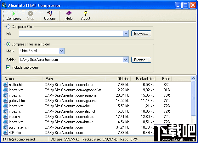 Absolute HTML Compressor是一个HTML文件压缩工具。可以快速缩小网页大小,去掉一些不必要的代码。而经过压缩过的网页,浏览器时不会出现任何变化,能让你选择各种优化的设置,可以压缩单一文件和子目录中的全部HTLML文件。