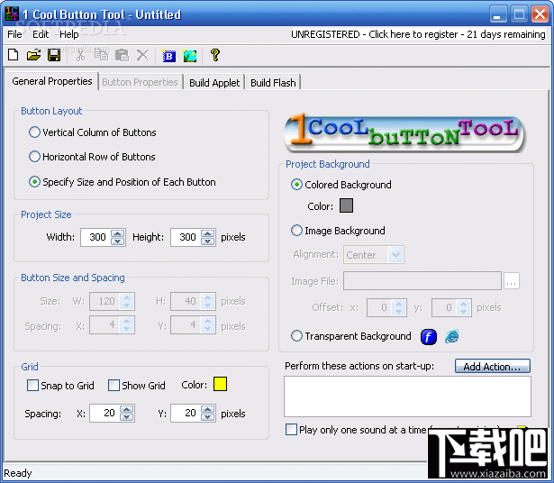 是一个用来设计网页按钮及网页动画特效的 Java applet 制作程序,并不需要使用到额外的 Java 或 HTML 编辑程序,轻轻松松就让你制作又酷又炫网页互动式按钮和特效。