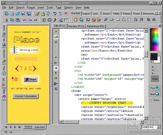1st Page 2000 是一个基于文本的Html编辑器,无论是新手还是专家1st Page都可以满足您的要求。主要特性包括可定置快捷键和工具条按钮。内置 450 个 JavaScript、15 个 DHTML Script 可供选择,支持标记加亮、代码格式话、代码压缩等。