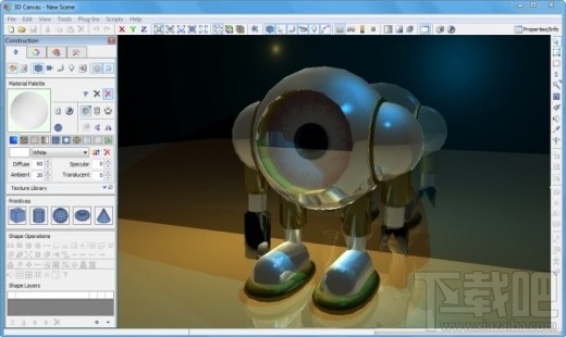 3D Canvas是一套兼具3D模型与动画制作的软件,它具有直觉拖放件构模型的功能,并具有deform、sculpt、和paint等建构模型的工具,也可导入/导出多种3D文件,动画方面支持Spline补插动画、贝氏曲线、骨骼动画、IK、场景阶层结构显示等许多进阶的功能,并可输出AVI动画文件,最重要这些都是免费的。