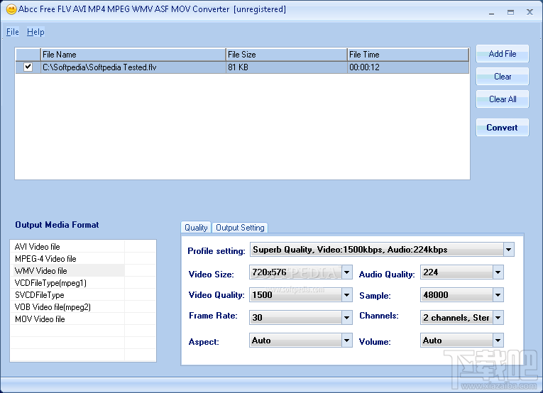 Abcc Free FLV AVI MP4 MPEG WMV ASF MOV Converterabcc转换器是易于使用,功能强大的软件,可以让您的FLV转换,为AVI , MP4,MPEG ,WMV , ASF, mov,AVI , MP4等格式,