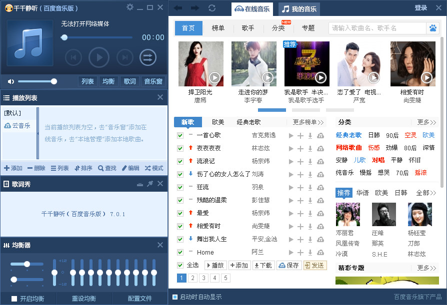千千静听播放器已属于百度音乐旗下,千千静听播放器下载新版本听拥有自主研发的全新音频引擎,支持DirectSound、Kernel Streaming和ASIO音频流输出、32比特混音、AddIn插件扩展技术,具有资源占用低、运行效率高、扩展能力强等优点。千千静听支持MP/mp3PRO、AAC/AAC+、M4A/MP4、WMA、APE、MPC、OGG、WAVE、CD、FLAC、RM、TTA、AIFF、AU等音频格式以及多种MOD和MIDI音乐,支持CUE音轨索引文件,支持所有格式到WAVE、MP3、APE、WMA等格式的转换,通过基于COM接口的AddIn插件可以支持更多格式的播放和转换。